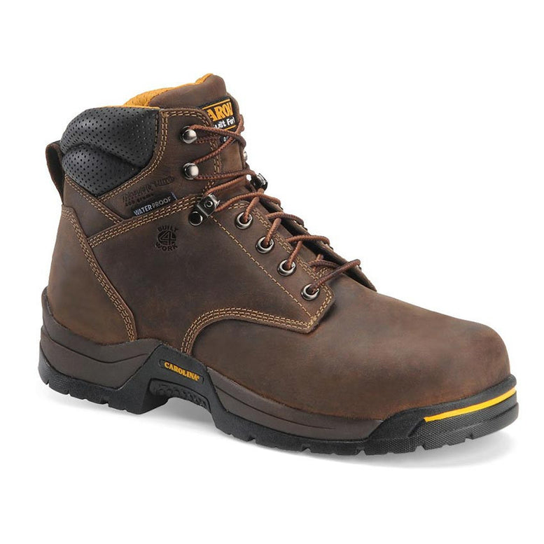 Carolina's only goal is to provide working people with footwear that is 100% effective. These Carolina Men's 6" Waterproof Insulated Broad Toe Work Boots exceed that goal. This boot is made of high quality leather. Carolina's exclusive proprietary SCUBALINER waterproof lining system will keep your feet dry, while the 400 grams of Thinulate insulation will keep them warm. The electrical hazard rating on these bad boys can withstand 14,000 volts at 60hz for one minute without any leakage. The cement construction and slip resisting rubber outsole create the ultimate level of comfort for a hard day on job. You couldn't ask for a better pair of boots to accompany you through your work day.
