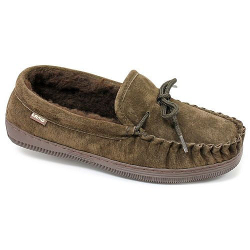 This comfy slipper features a soft suede upper, and a soft faux fur lining that is sure to keep the chilliest of feet warm. A cinch tie keeps the Loafer Moccasin firmly on your foot while the rubber sole keeps your feet firmly on the floor. Durable rubber soles are made to withstand outdoor wear. Keep your feet warm this winter with these great Cozy Comforts suede Moccasin slippers.
